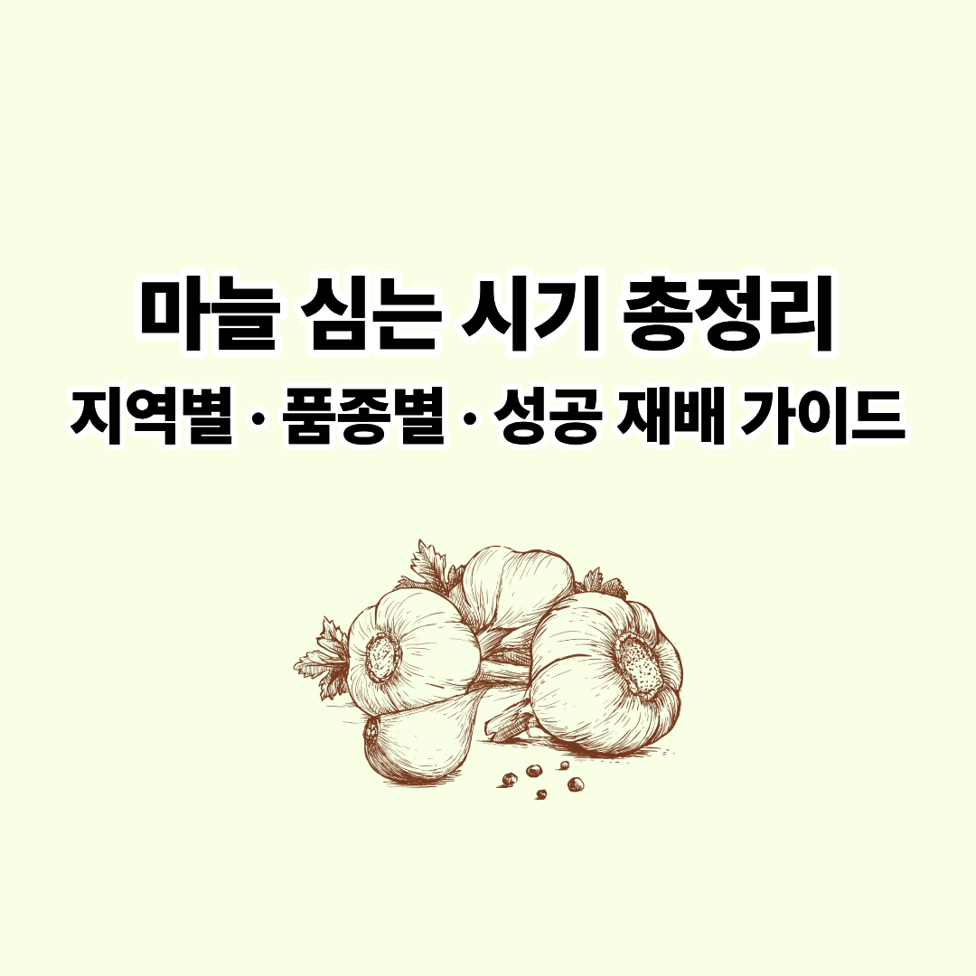 - 마늘 심는 시기는 지역(중부 vs 남부) + 품종(한지형 vs 난지형)에 따라 다르므로 재배 전 이를 정확히 파악해야 합니다.